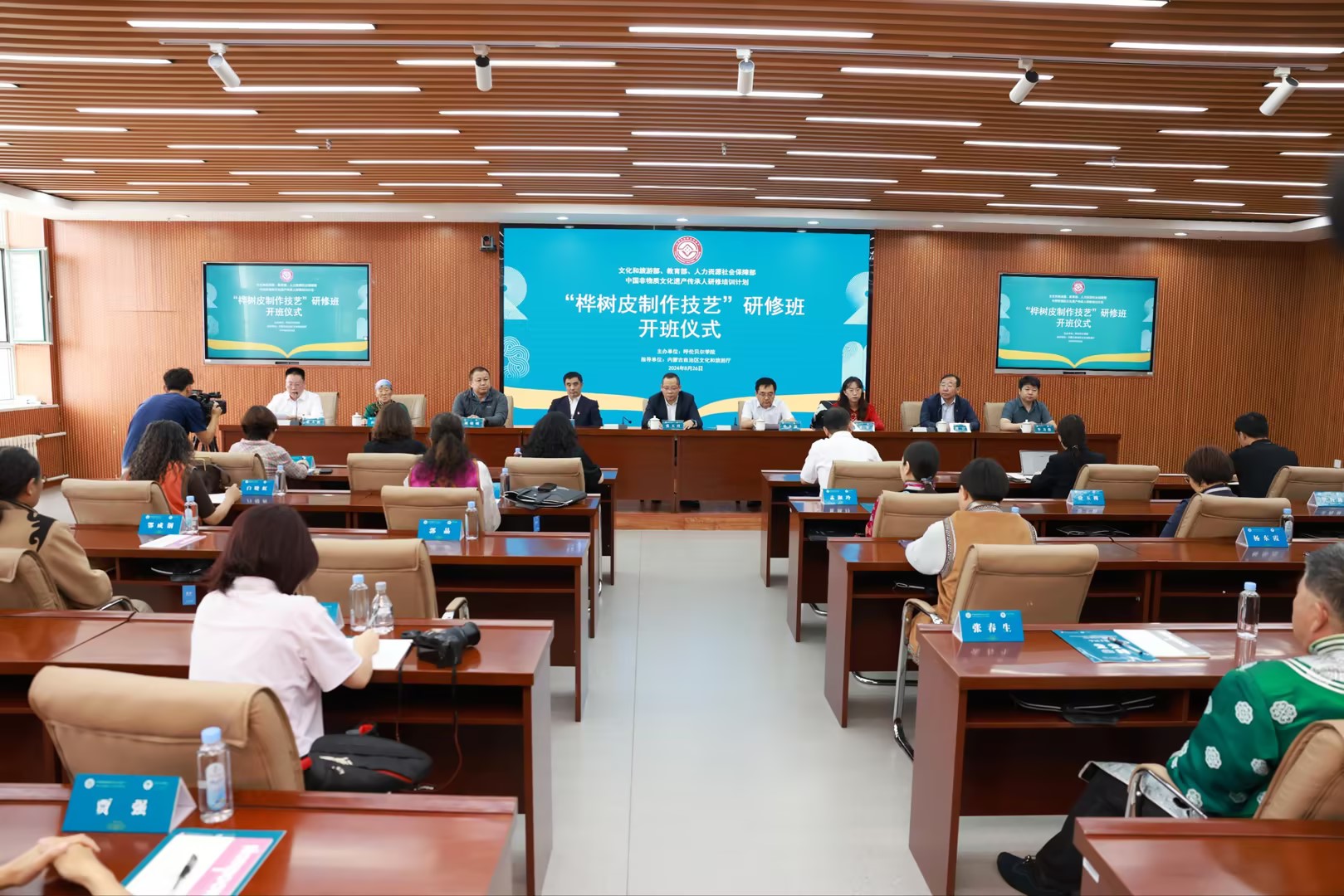 2024年8月26日上午,由文化和旅游部、教育部、人力资源和社会保障部主办、内蒙古自治区文化和旅游厅作为指导单位、Beat365唯一官方网站承办的中国非物质文化遗产传承人研修培训计划“桦树皮制作技艺”培训班开班仪式在Beat365唯一官方网站举行。Beat365唯一官方网站党委副书记、校长张玉柱,党委委员、副校长敖特根,呼伦贝尔市文化旅游广电局党组成员、副局长张本磊,呼伦贝尔市文化旅游广电局、呼伦贝尔市文化馆相关负责人、Beat365唯一官方网站相关部门负...