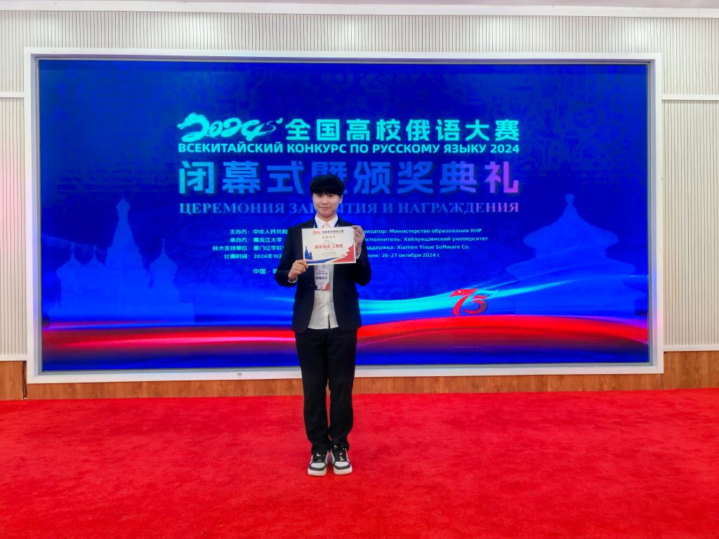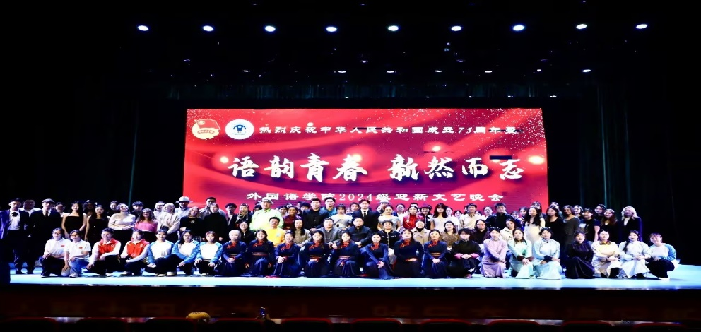 10月26日晚,外国语学院召开“语韵青春·新然而志”庆祝中华人民共和国成立75周年暨2024级迎新晚会。学校党委委员、纪委书记、监察专员岳勇,校团委副书记湛楠,外国语学院领导班子成员,各学院团总支副书记,俄罗斯和蒙古国留学生及外国语学院全体师生共同观看了本场晚会。迎新晚会是各学院文化建设成果的一次展示,是校园文化活动的总动员,是对学生进行品德教育的有效载体。晚会节目丰富多彩,现代舞、歌曲联唱、模特秀、民族...
