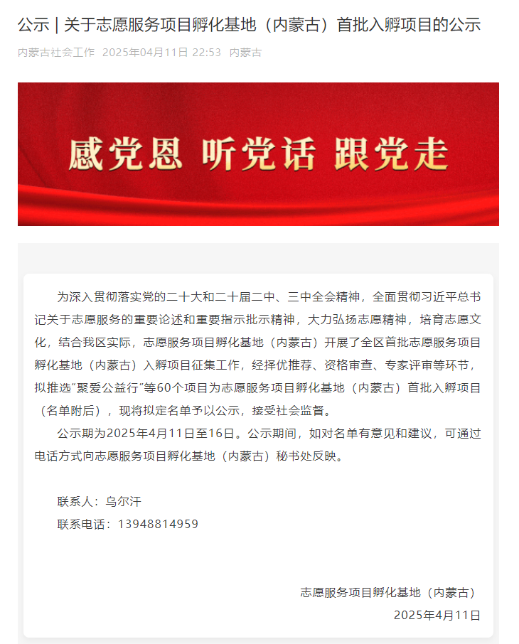 喜报|Beat3652项志愿服务项目入选志愿服务项目孵化基地(内蒙古)首批入孵项目