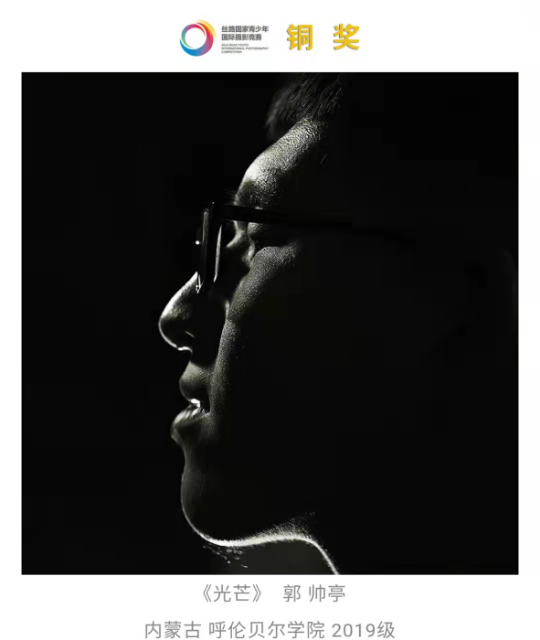近日,由北京国际摄影周组委会、中国艺术摄影学会、丝路国家摄影组织国际联盟主办,丝路国家青少年国际摄影大展工作委员会、中华世纪坛世界艺术中心北京故事文化科技有限公司承办的“2021丝路国家青少年国际摄影大展”中,美术学院2019级摄影班郭帅亭同学荣获内蒙古赛区铜奖。从征稿启动到9月8日截稿,内蒙古分赛区稿件分别来自北京、湖南、安徽、吉林、辽宁、黑龙江、江西、浙江、广西壮族自治区、内蒙古自治区等地内蒙古籍青...