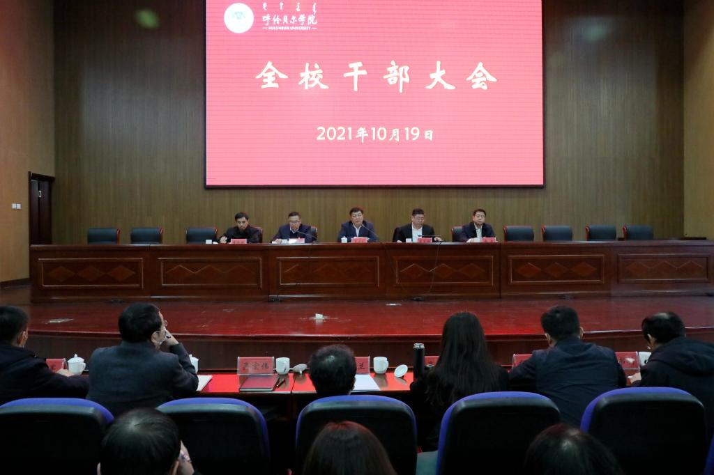 10月19日下午,Beat365召开干部大会,校党委书记王广利,党委副书记、校长李文阁,党委副书记张国栋,党委委员、纪委书记、监察专员岳勇,党委委员、副校长敖特根及全体副科级以上干部参加了会议。会议由张国栋副书记主持。王广利书记全面总结前一阶段Beat365党的建设、思想政治工作以及教育教学工作取得的成绩,并从“以政治建设为统领,聚焦夯基固本,推动全面从严治党”“以高质量党建工作为引领,全面推进学校各项工作”“加强党...