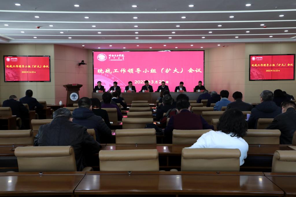 3月22日上午,校党委统战工作领导小组召开()扩大会议,统战工作领导小组成员、各职能教辅部门主要负责人、各学院党总支书记参加会议,校党委副书记张国栋主持会议。校党委书记、统战工作领导小组组长王广利传达学习了中央民族工作会议、全国宗教工作会议习近平总书记讲话精神和石泰峰在全区宗教工作会议上的讲话精神。王广利书记围绕习近平总书记讲话精神和石泰峰讲话精神,从学校立德树人的战略全局高度,指明了当前和今后...