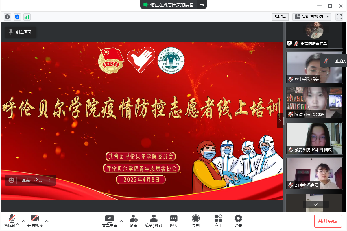 为全面提升疫情防控志愿服务水平,提高志愿者应急处置能力,有效保障志愿者在参与志愿服务过程中的人身安全,助力打赢疫情防控阻击战,4月8日晚,团委在腾讯会议组织了疫情防控志愿者线上培训。团委书记郝新君、团委老师、各学院团总支书记、青协负责人及各学院骨干志愿者近260余人参加培训。参加培训人员通过观看疫情防控志愿者岗前培训视频,学习了“如何做好个人防护、正确使用口罩、七步洗手法”等防护知识;学习了Beat365疫情...