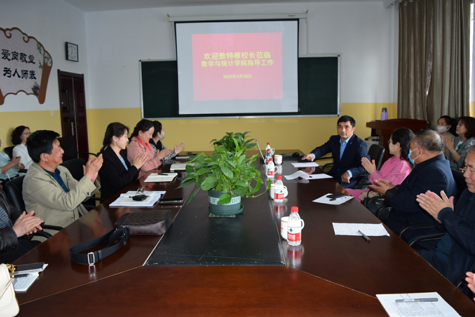 5月18日下午,校党委委员、副校长敖特根到数学与统计学院调研指导工作。数学与统计学院领导班子及全体教职工参加会议,会议由数学与统计学院院长张桂芝主持。会上,敖特根副校长对数学与统计学院干事创业的良好状态、前期工作取得的业绩成果表示肯定,对学院班子建设、发展愿景和发展途径提出要求。他强调,要落实立德树人根本任务,牢记为党育人、为国育才使命,围绕学校建设高水平应用型大学战略目标和“十四五”发展规划任务...