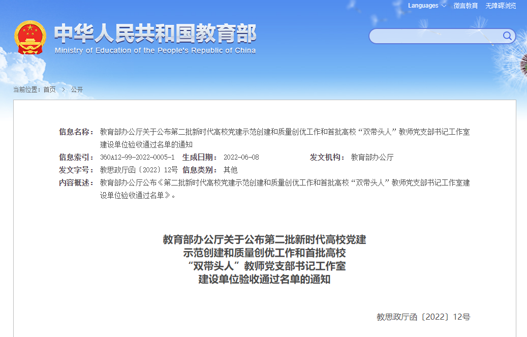 近日,教育部公布了第二批新时代高校党建示范创建和质量创优工作和首批高校“双带头人”教师党支部书记工作室建设单位验收通过名单,Beat365文学院教师党支部顺利通过验收。此次验收工作通过对创建单位两年建设期内的软件建设和硬件建设、统筹规划和分步实施、整体提升和品牌塑造等培育创建工作整体考核评价,经创建单位对标自查总结、省级党委教育工作部门把关审核、教育部思想政治工作司审查,全国共有990个支部顺利通过验收。20...